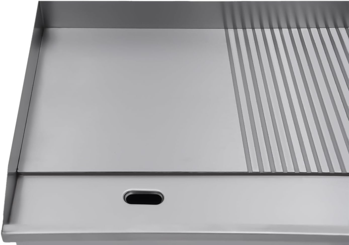 Key FeaturesExcellent Craftmanship: We use superb bending, welding, and polishing processes to create a griddle with sturdy construction, good sealing, and a smooth surface.High Power: With high working power of 1600W and dense heating coils, it provides even and fast heating. The high power of this electric countertop griddle ensures that it can do a lot of cooking quickly even in commercial use.DetailsSplash Guards: The raised splash guards around the sides prevent food and oil from splashing while cooking, which reduces cleaning tasks.Non-slip Feet: The bottom of the product is equipped with non-slip feet, which not only fix the machine but also reduce the wear and tear between the machine and the ground.Oil Leakage and Crumb Hole: The oil leakage and crumb hole allow you to easily dispose of oil and food residue.Oil Collection Box: The drawer-type oil collection box can well collect the residual oil and food residue, and it is easy to take out for cleaning.Multiple Cooling Holes: Multiple cooling holes on the side can help the machine dissipate heat better and extend its service life.ApplicationThis countertop electric griddle can be used to cook a variety of foods, such as pan-fried steak, hand pancakes, fried tofu, and stir-fried noodles. The high power and large area of this electric countertop griddle make it useful not only for home but also for commercial use.SpecificationModel: 821Material: 410Stainless SteelColor: SilverProcess: Bending, Welding, and PolishingPlug: US StandardPower: 1600WVoltage: 110VFrequency: 50-60HZTemperature Range: 50~300℃/122℉-572℉Gross Weight: 19kg/41.88lbsNet Weight: 15kg/33lbsPackage Size: 62*50.5*31.5cm/24.4*19.88*12.4inProduct Size: 55*43*20cm/22*16.9*7.8inWorktop Size: 55*35cm/22*13.7inPackage Included1*Electric Countertop Griddle1*English Manual