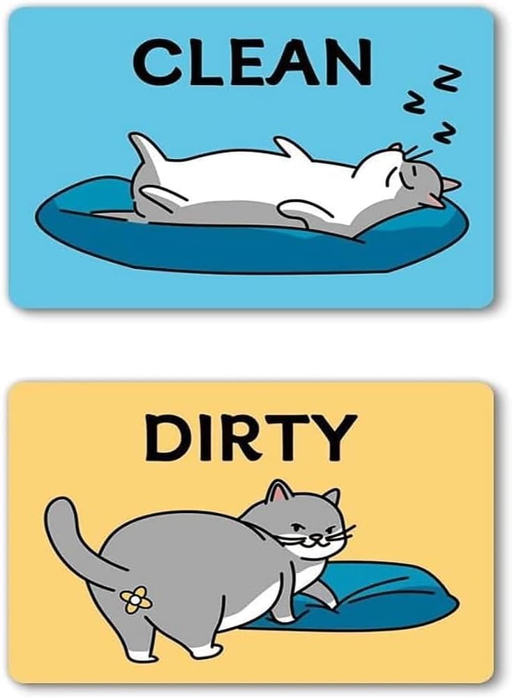 • Double-Sided Design: Measuring 3.6 x 2.2 inches, the dishwasher sign combines a bright background with a cute cat, adding humor and personality to your kitchen. This cute cat design is also perfect for pet lovers.