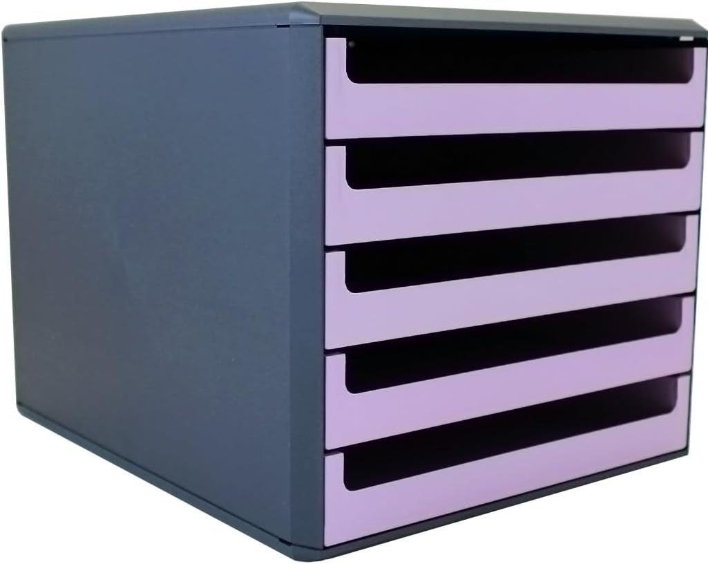 Systematic organisation and storage, this is possible with the 3005 box from Metzger & Mendle. The box, as well as the drawers are made of sturdy plastic and the five drawers are perfect for A4 paper size. So there is always order on the desk. The pull-out lock also ensures that the drawers cannot be extended too far and tip out of the box. The drawers can be written on with the help of labels, but also directly with e.g. permanent or chalk markers. Since we only use post-consumer material for the production of this magazine file, we have been certified with the Blue Angel.