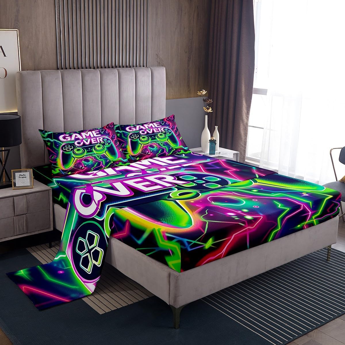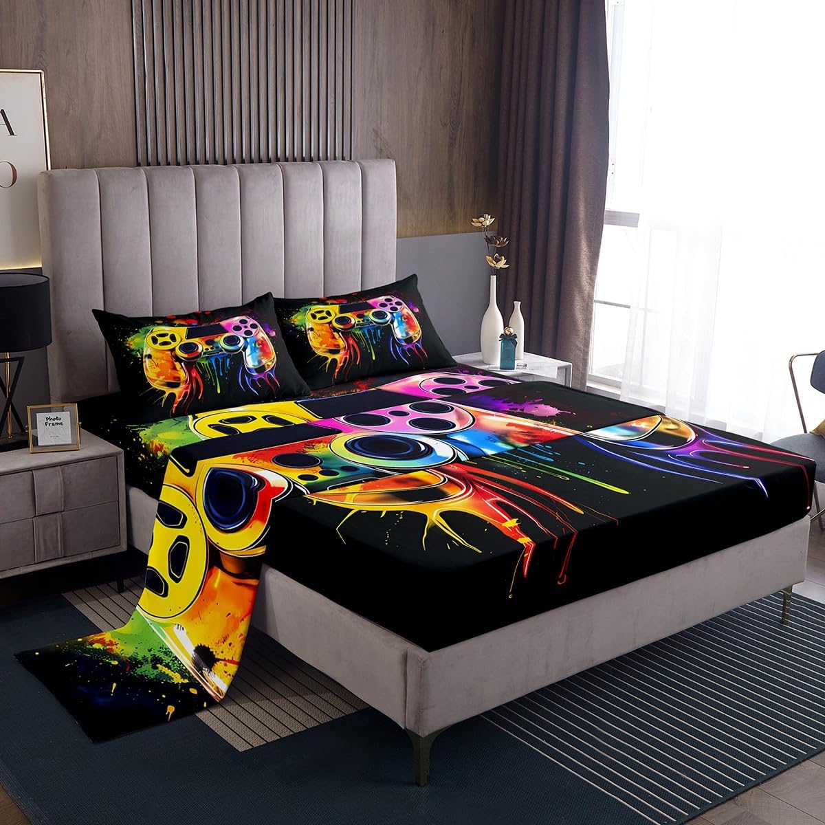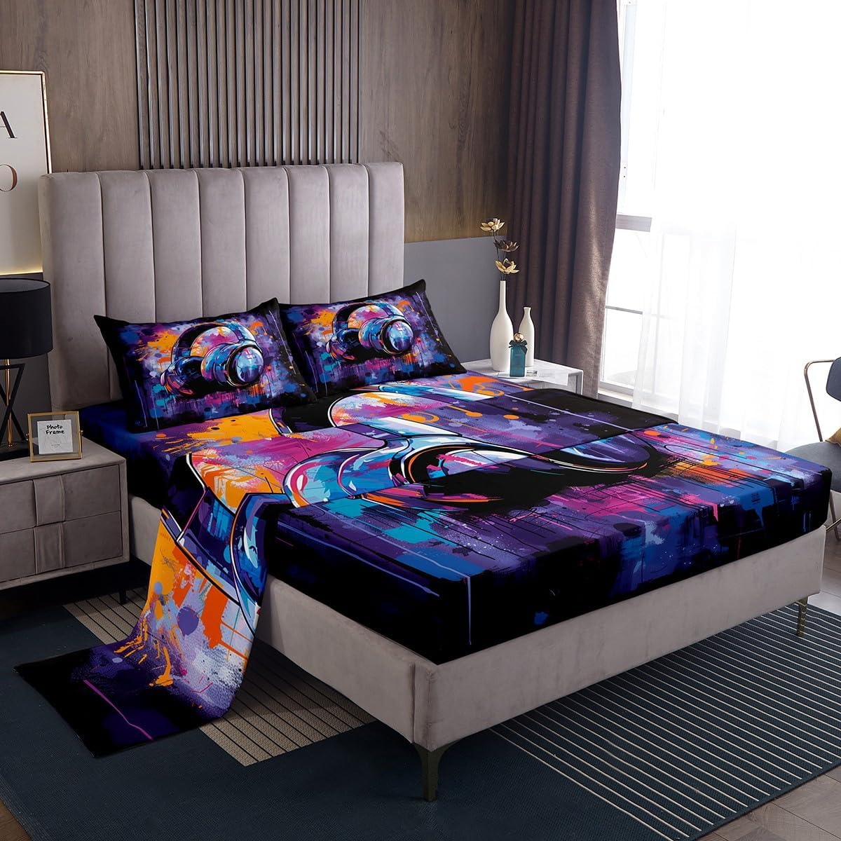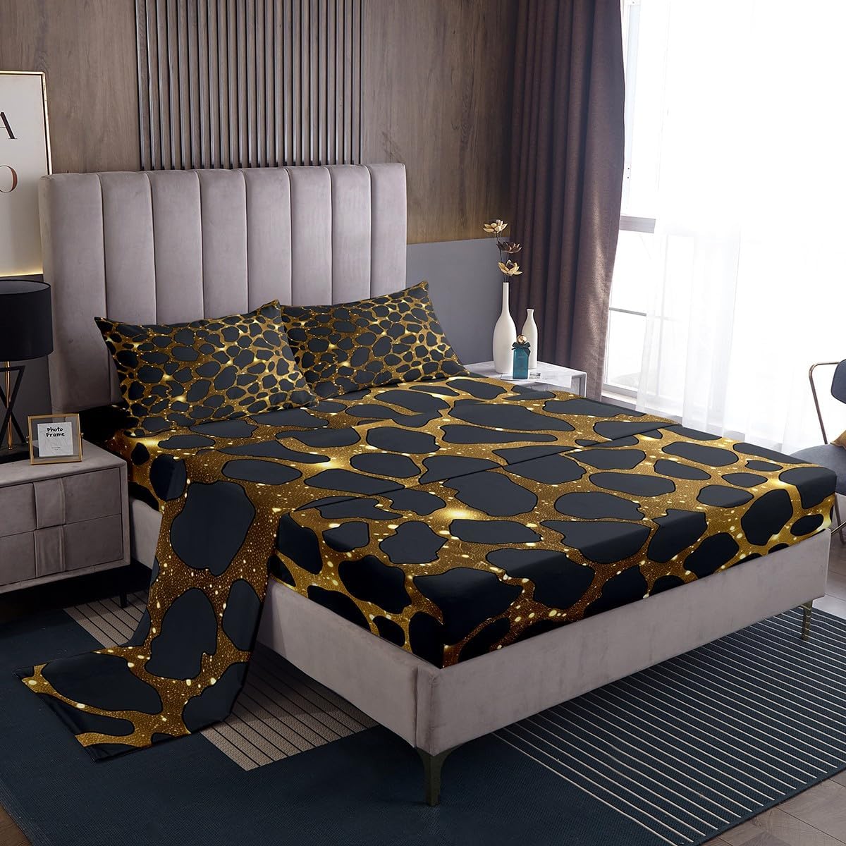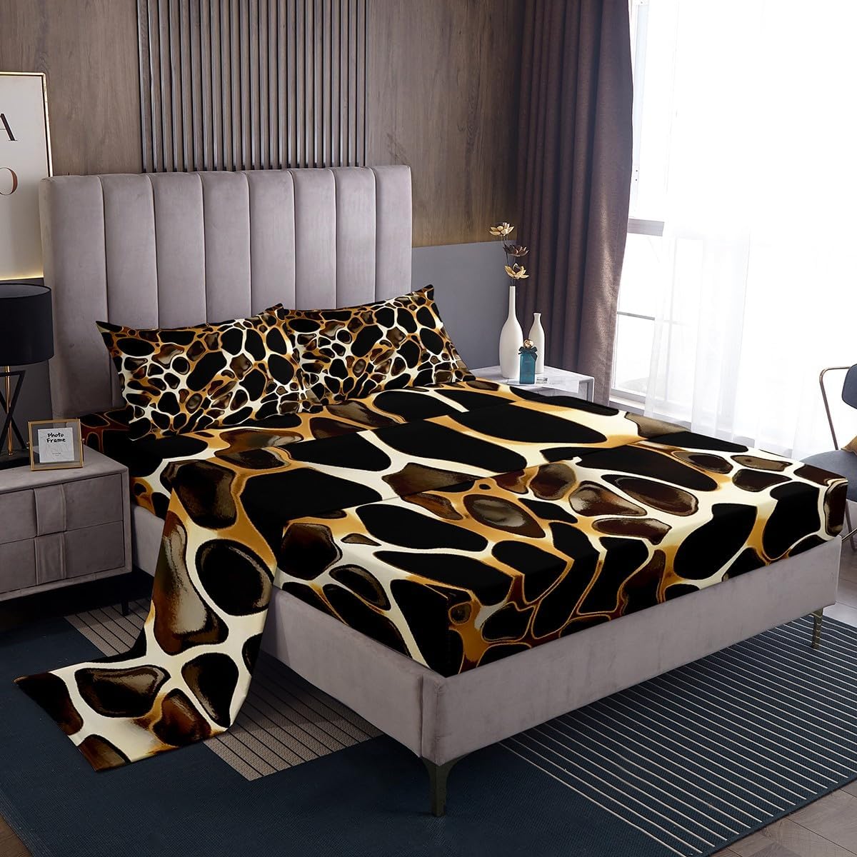 Our bed sheet is made of polyester fabric, lightweight and soft; stylish design is very suitable as room decoration for boys and girls; keep warm in winter and cool in summer; create a comfortable sleeping environment to make you fall asleep all night Range of size 1 twin fitted sheet 39 inch x 75 inch x 16 inch and 1 twin flat sheet 66 inch x 96 inch and 1 standard pillowcase 20 inch x 30 inch 1 full fitted sheet 54 inch x 75 inch x 16 inch and 1 full flat sheet 81 inch x 96 inch and 2 standard pillowcase 20 inch x 30 inch 1 queen fitted sheet 60 inch x 80 inch x 16 inch and 1 queen flat sheet 90 inch x 102 inch and 2 standard pillowcase 20 inch x 30 inch 1 king fitted sheet 78 inch x 80 inch x 16 inch and 1 king flat sheet 90 inch x 106 inch and 2 standard pillowcase 20 inch x 36 inch