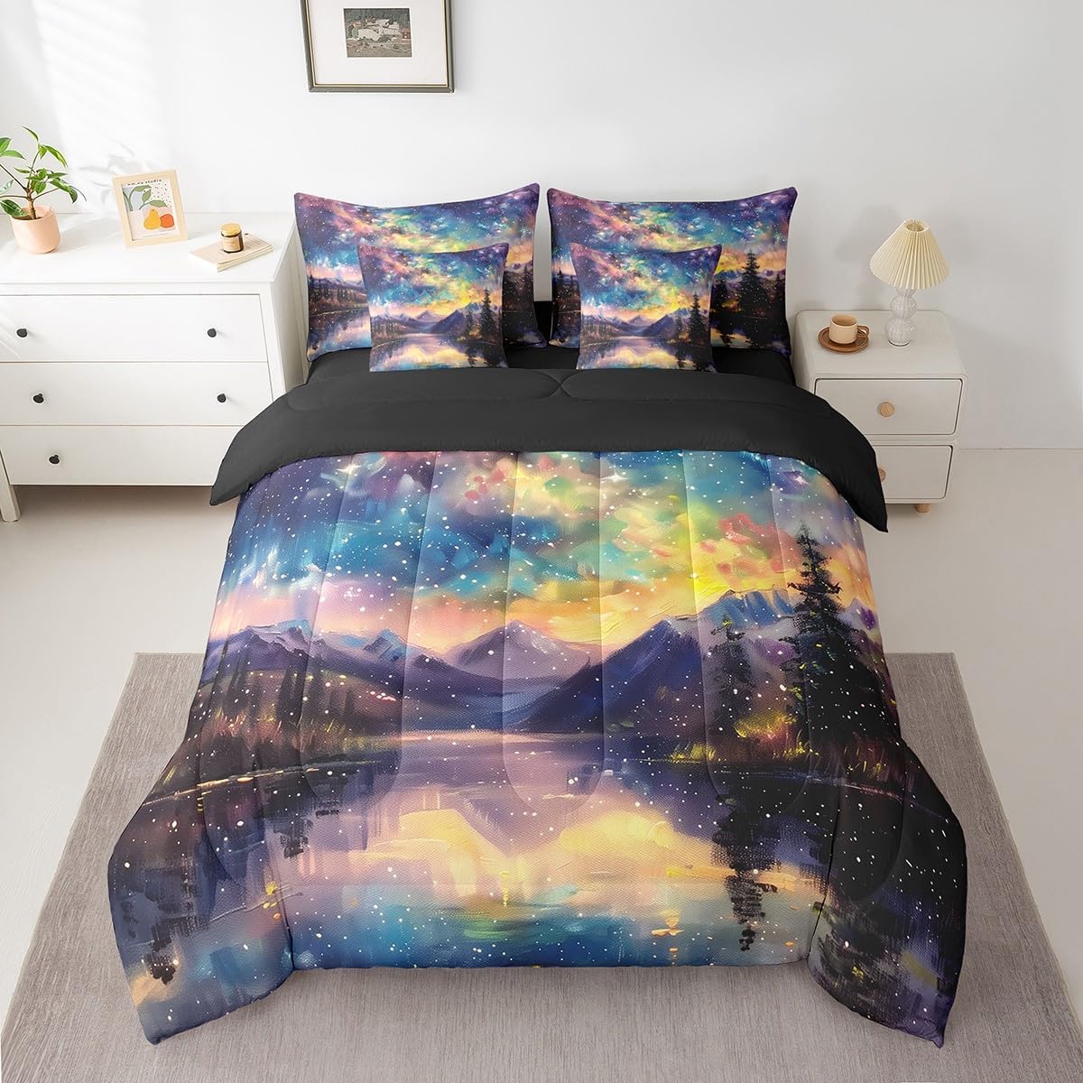 Welcome to our store. We have specialized in home textile for many years. We are contribute to provide the best customer service and products. We'll try our best to answer your questions and solve your problems. Size information: Twin size: 1 Down Comforter 68"W x 90"L, 1 Fitted Sheet 39"W x 75"L x 16"H, 1 Flat Sheet 67"W x 96"L, 2 Pillowcases 20" x 30", 2 Throw Pillow Covers 18" x 18" Full size: 1 Down Comforter 79"W x 90"L, 1 Fitted Sheet 55"W x 75"L x 16"H, 1 Flat Sheet 81"W x 96"L, 2 Pillowcases 20" x 30", 2 Throw Pillow Covers 18" x 18" Queen size: 1 Down Comforter 90"W x 90"L, 1 Fitted Sheet 60"W x 80"L x 16"H, 1 Flat Sheet 90"W x 102"L, 2 Pillowcases 20" x 30", 2 Throw Pillow Covers 18" x 18" King size: 1 Down Comforter 104"W x 90"L, 1 Fitted Sheet 78"W x 80"L x 16"H, 1 Flat Sheet 90"W x 106"L, 2 Pillowcases 20" x 36", 2 Throw Pillow Covers 18" x 18" Useful and practical: A luxurious product for homes,dorm rooms,hotels,guest rooms. Practical to use for being polyester, feels like cotton which is super soft and breathable. No chemicals used, no dye substance harming the health of you or your family. Unique design: Vivid Colors won't fade thanks to new 3D digital printing methods. These unique designs match well with various color palettes of your rugs, curtains, headboard, furniture, and all other decor accessories. Washing instructions: Machine wash separately in cold water,hang dry, do not bleach.