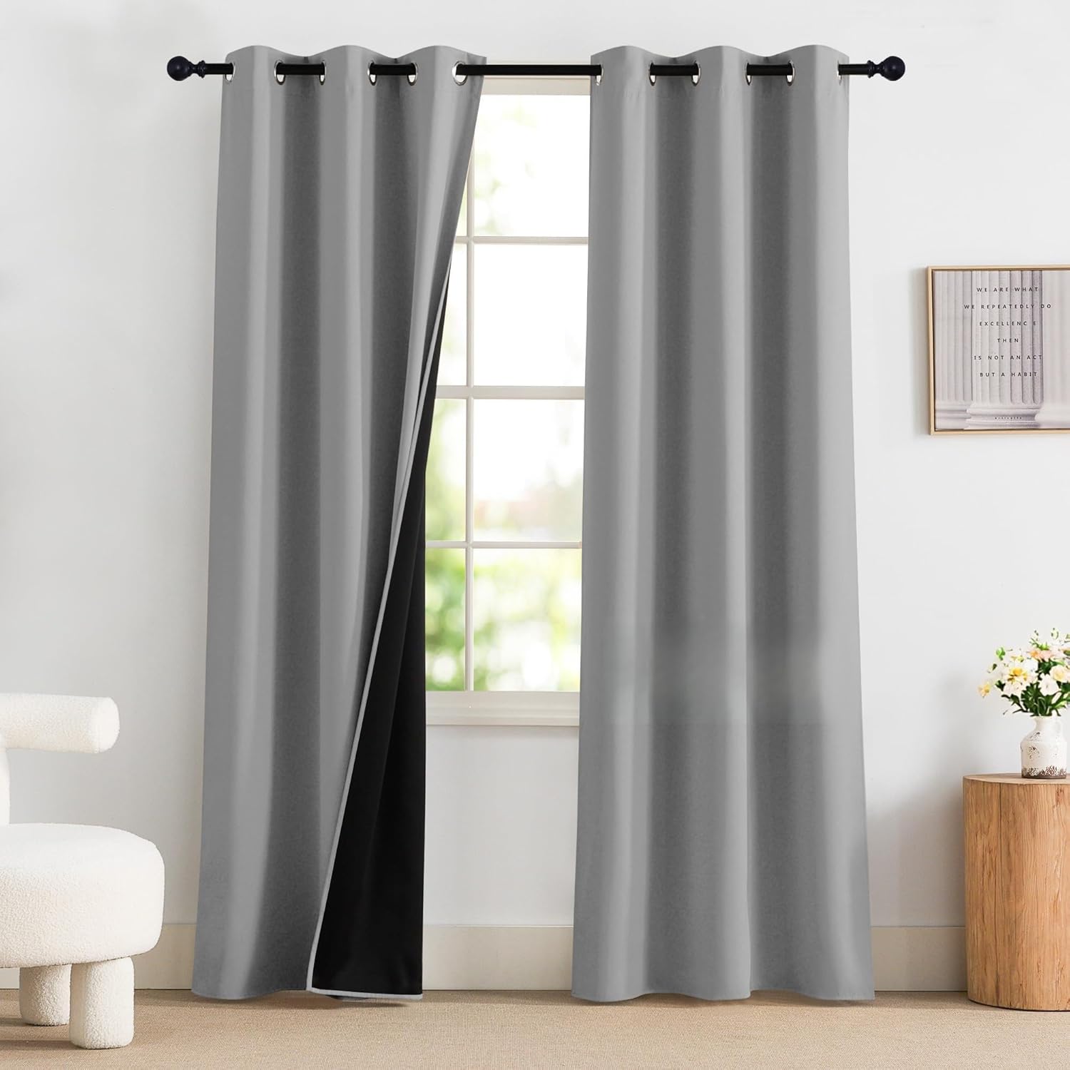 NICETOWN Blackout Curtains are so much more than just bits and pieces of fabric that are sewn together to prevent sunlight from entering your home, they go beyond that mundane function and provide additional benefits that do not meet the eye instantly.Light Blocking Energy Savers. Having the heavy, multi-layered microfiber blackout window curtains or drapes can make a world of a difference in reducing the amount of light that comes in from outside, which has green-conscious consumers excited about investing them as energy-efficient window treatments. A home insulated and remains warmer in wintertime relieves the strain on home heating and reduces 25 percent energy budget at most.Sleep Soother n Noise Buffer. It's hard to get babies to take a rest during the day when the sun is streaming brightly through a bedroom window. Blackout curtains encourage the best possible sleep and most comfortable setting for day sleepers and the ones who have trouble falling asleep, by automatically darkening and lowering noise levels.Absolute Privacy n Relax. Not only that but also make your resting zone truly blissful. They would be perfect for any home theater and supply you with the enjoyment of watching TV in real darkness.If you are looking for great and cost-effective ways of re-inventing the look of your home, NICETOWN readymade curtains would be the game changer in your shopping cart. They are crafted for the topmost and luxury, coming with the strong grommet ring top for easy installation and smooth sliding over a rod. Each curtain panel is carefully ironed and ready to serve as your window dressing.What color do you like?