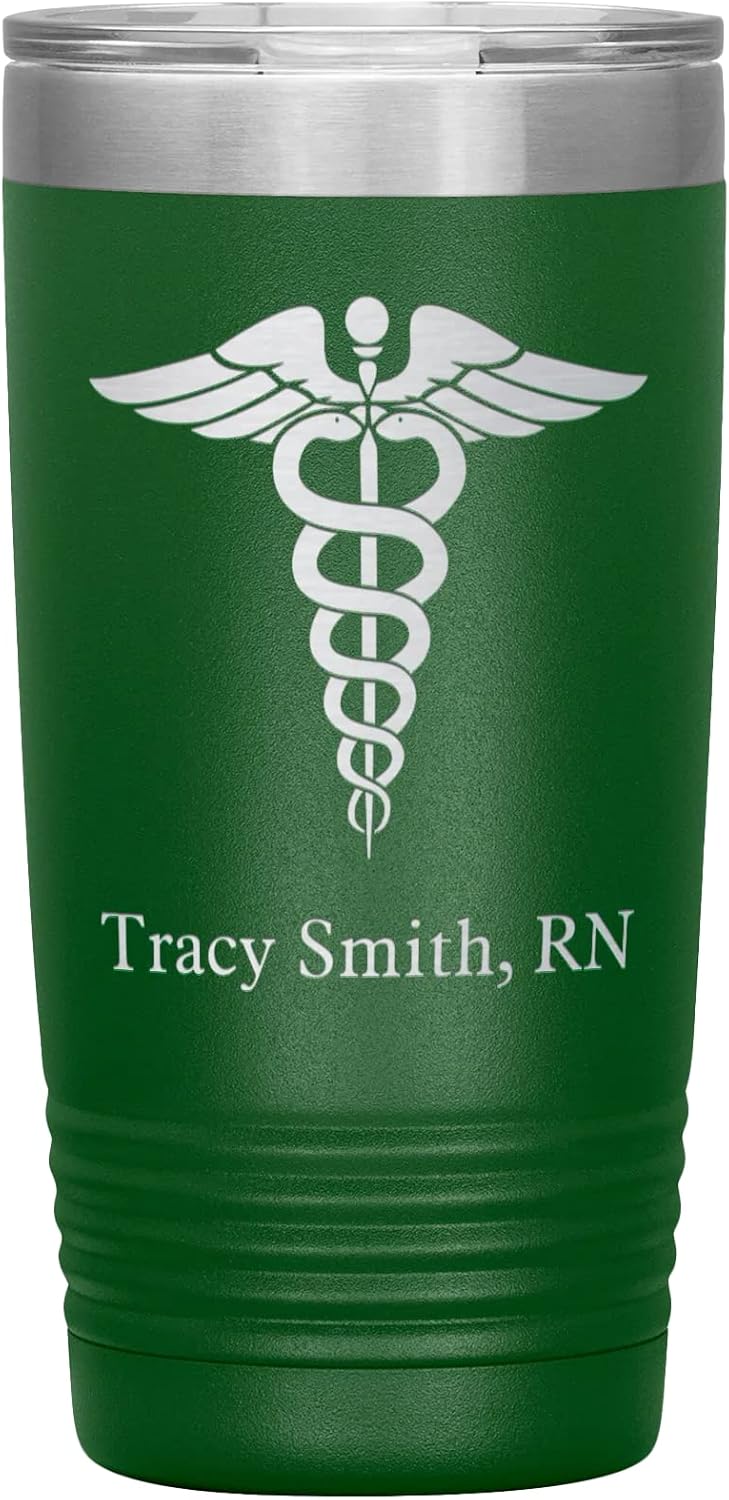 This stainless steel insulated Registered Nurse tumbler is precision laser engraved and available in a variety of colors. Makes a great RN gift for a Registered Nurse.