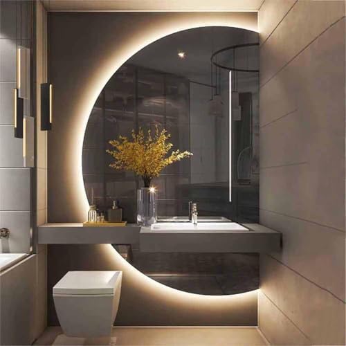 Transform your bathroom and other spaces with our LED lighted wall mirror, designed for both style and functionality. This frameless, backlit mirror features an elegant semicircular shape that adds a modern touch to any room, whether it’s your bathroom, bedroom, or hallway. Crafted from high-quality 5 mm silver mirror, it provides a clear reflection while enhancing your decor. Available in various sizes—90 cm, 100 cm, 110 cm, 120 cm, and 130 cm in diameter—this versatile mirror fits seamlessly into any area, from washrooms to living rooms. Enjoy the convenience of adjustable, dimmable three-color lighting, allowing you to set the perfect ambiance for any occasion. The anti-fog feature ensures a clear view even after a hot shower, making it an ideal choice for your bathroom. Equipped with a touch button for easy operation, our explosion-proof mirror prioritizes safety without compromising on style. The wall mount design allows for simple installation, making it a great addition to your home. Please note that this product includes only the mirror and necessary accessories. Manual measurements may vary by 1-2 cm, and colors may differ slightly due to lighting and screen display. Elevate your living space with our LED lighted wall mirror, where modern elegance meets practical use.