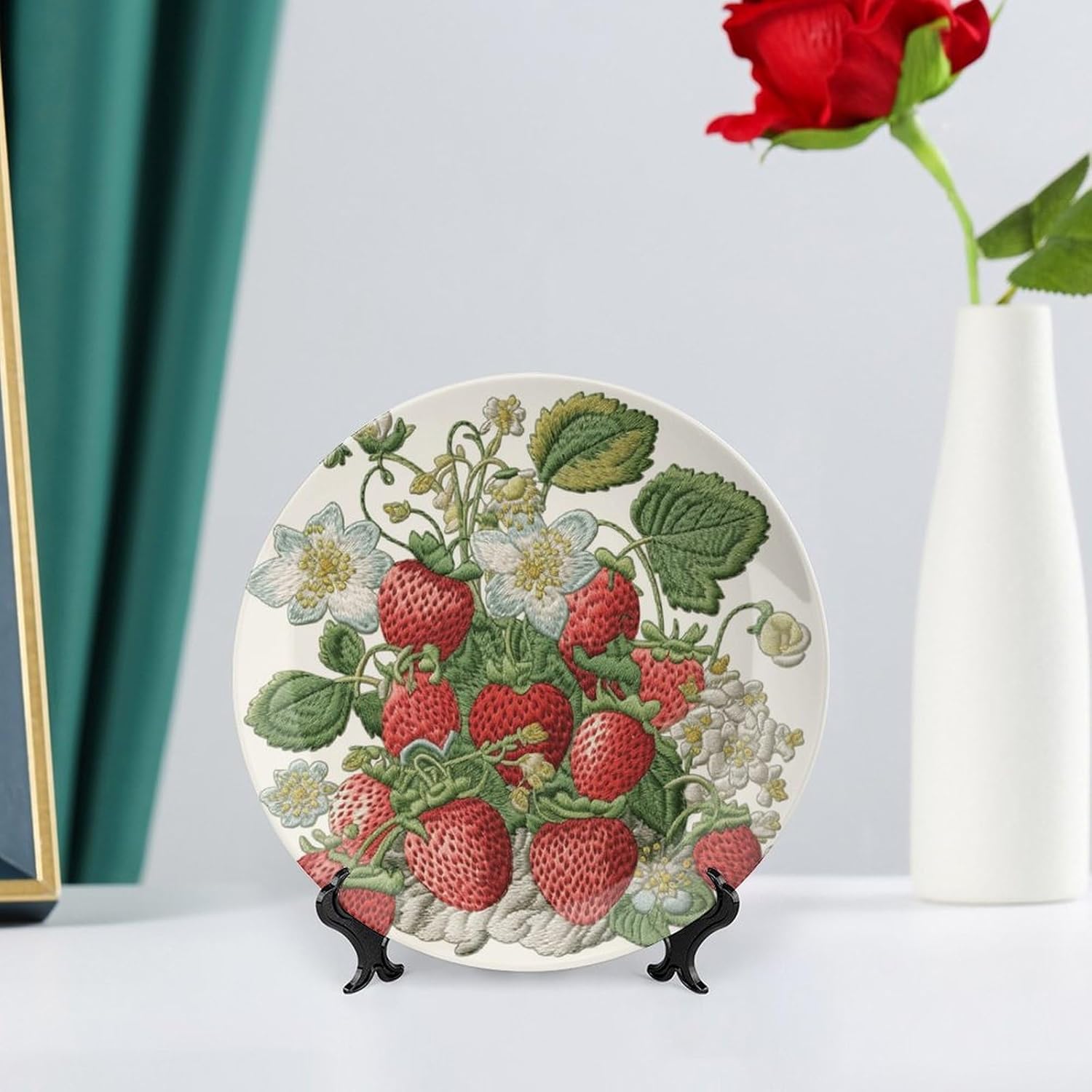 Porcelain Ornament Wall Art Ceramic Dinner Plate Bone China Plates Set Art Ornaments Wall Hanging Decoration Home Art Decor Ceramic Wall Art Decor Bone China Dinner Plates Ceramic Ornament Plates Round Display Plate Decoration China Dishes Ceramic Wall Decor Plate Crafts Decorative Plates About our personalized ceramic ornament plate This package includes: decorative plate + chassis + hook + adhesive sticker. Material: Bone China Color: as picture shown 4 Size: 6 inch - Diameter 15.4 cm/6.1 in, Thickness 1.7 cm/0.7 in. 7 inch - Diameter 18 cm/7.7 in, Thickness 2 cm/0.8 in. 8 inch - Diameter 20.7 cm/8.7 in, Thickness 2 cm/0.8 in. 10 inch - Diameter 25.7 cm/10.1 in, Thickness 2.7 cm/1.1 in. Our Strawberry Embroidery decorative bone china plates are made of ceramic material, exquisite and beautiful, and the artistic decorative surface is smooth and will not scratch your hands. This Decorative Plates is designed with a self-adhesive sticker, which is very convenient even if you want to remove it later. The self-adhesive sticker can be left on the wall without leaving any traces, and it is also easy to install. The size of the personalized ceramic plate tableware with a display stand is sturdy, versatile, fashionable, and safe for everyone to use. This Strawberry Embroidery bone china decorative plate with a display stand comes with a bracket. Round Plates Ornament can be displayed in a porcelain cabinet, placed on a shelf or side table, or hung on the wall. Both decorations are beautiful, very elegant and artistic. These porcelain plates are perfect for enhancing the beauty of various spaces, such as a study, office reception area, or foyer. Its exquisite design complements any interior decoration style and is a focal point no matter where it is placed.